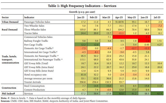 Below is a quick snapshot of the services sector performance from the RBI bulletin.